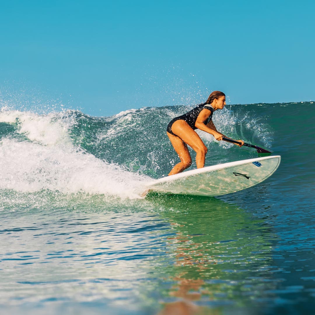 パドルボードで波をキャッチする事はサーフボードでキャッチする以上に難しい事です。ですが Boost Fin を使用する事で、さらにうねりから波をキャッチできるので楽しみはますばかりです